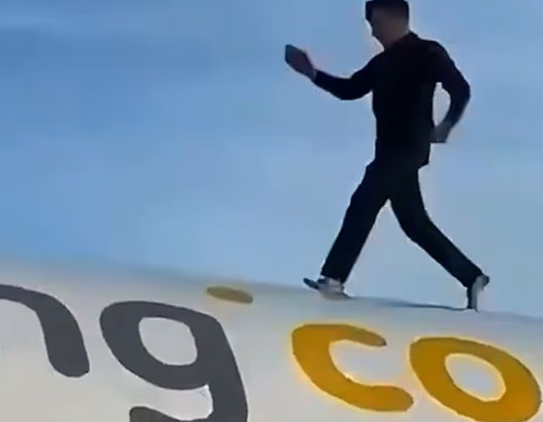 Pamjet e filmuara nga pasagjerët tregojnë të riun duke bërtitur, duke prekur gjoksin dhe duke kërcyer mbi çatinë e avionit, ndërsa stafi përpiqej ta bindte të zbriste. Ai madje nxori një pije nga çanta dhe e piu mbi avion, duke injoruar thirrjet e punonjësve. Sjellja e tij zgjati rreth 10 minuta dhe shkaktoi një vonesë prej dy orësh për fluturimin.