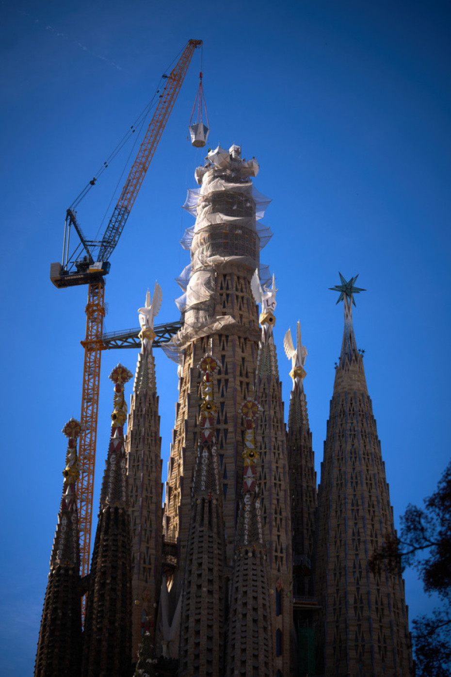 Kryqi prej qelqi, copëza e fundit që u vendos ditën e djeshme në kullën qëndrore të katedrales ‘Sagrada Familia’ në Barcelonë, e plotëson ndërtimin e kishës ikonike të Antoni Gaudi-t, 144 vite pas nisjes së punimeve, duke prekur lartësinë maksimale përfundimtare prej 172.5 metër.