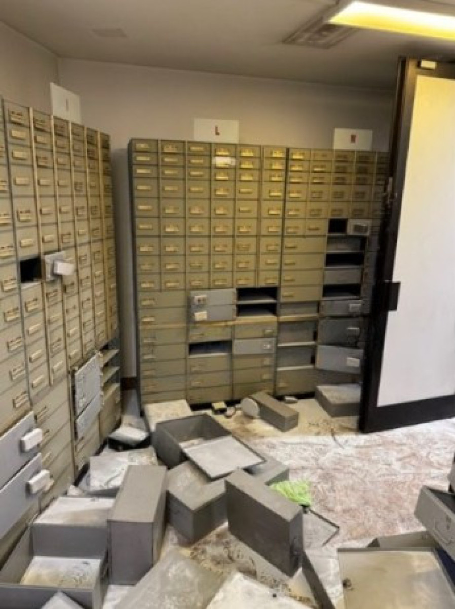 Sakaq mediat në Itali kanë publikuar edhe pamje nga brenda bankës të grabitur. Në fotot e siguruara nga vendngjarja, të realizuara nga gazetari Giuseppe Crimaldi, shihen kasaforta të boshatisura dhe rafte të hedhura në tokë, duke dëshmuar gjurmët e lëna nga autorët gjatë grabitjes.