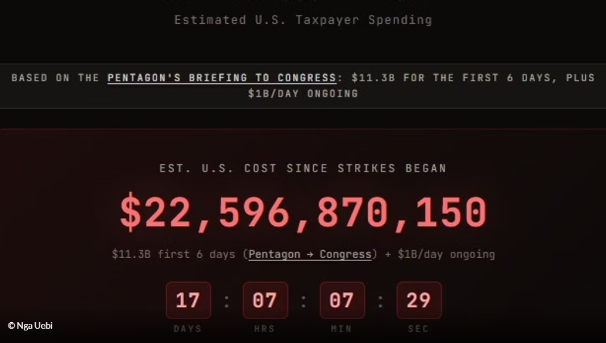 Këto vlerësime ofrohen nga faqja e internetit Iran Cost Ticker, një lloj "gjurmuesi i kostove të luftës" që monitoron kostot e përgjithshme të shkaktuara nga administrata amerikane për operacionin ushtarak kundër Teheranit. Numëruesi lëviz vazhdimisht, duke përditësuar kostot e vlerësuara sekondë pas sekonde.