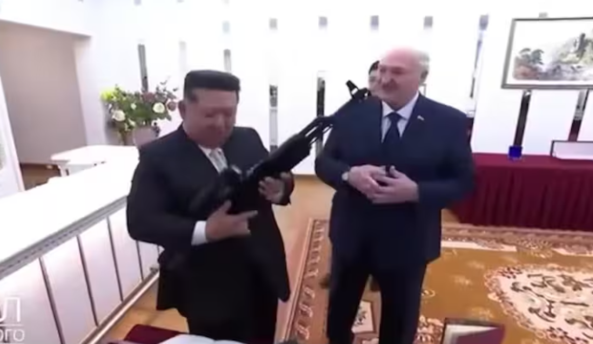 Pamjet e shpërndara nga mediat shtetërore bjelloruse treguan Lukashenkon duke i paraqitur Kim-it atë që dukej të ishte një pushkë automatike. Lideri i Koresë së Veriut ju përgjigj me një gjest tallës të mbushjes së armës dhe i tha Lukashenkos më pas, "faleminderit".