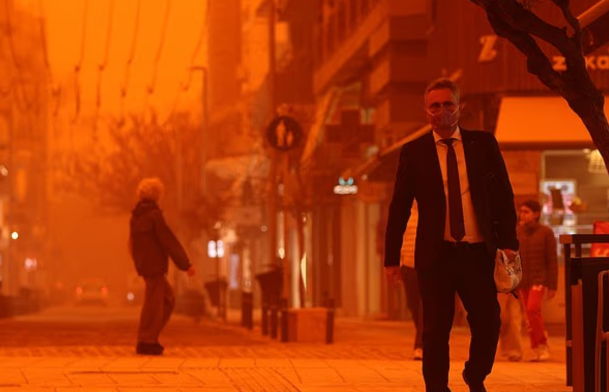 Ishulli grek i Kretës është përfshirë nga një stuhi e fuqishme pluhuri saharian, e shoqëruar me erëra të forta dhe madje edhe një tornado, duke shkaktuar kaos në transportin ajror dhe duke e kthyer qiellin në nuanca të pazakonta të kuqe dhe portokalli.