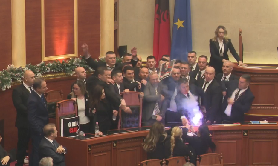 Mes kaosit total është mbyllur seanca e kësaj të enjteje në Kuvendin e Shqipërisë. Ende pa shkuar ora 10:00, orari zyrtar i nisjes së seancës, deputetët e Partisë Demokratike ishin futur në godinë dhe menjëherë zunë vendet e ministrave. Garda i kërkoi të largohen e të ulen në vendet e tyre, por u përballën me refuzim e më pas nisi edhe përplasja.