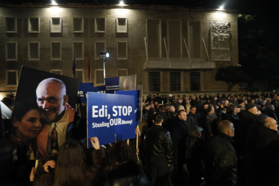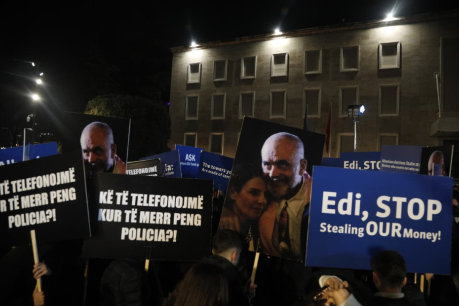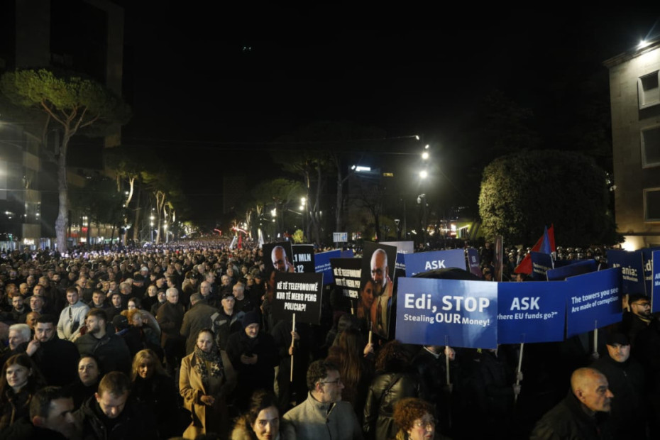 Me mijëra qytetarë u mblodhën fillimisht para godinës së Kryeministrisë, ku kërkuan dorëheqjen e kryeministrit Edi Rama dhe zëvendëskryeministres Belinda Balluku, në një tubim të thirrur nga opozita.