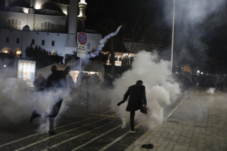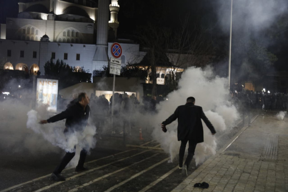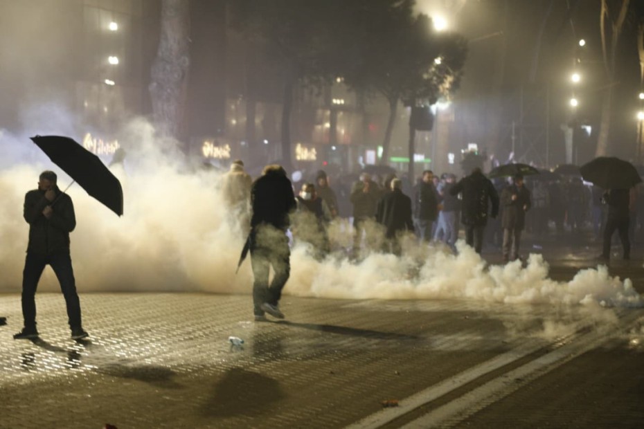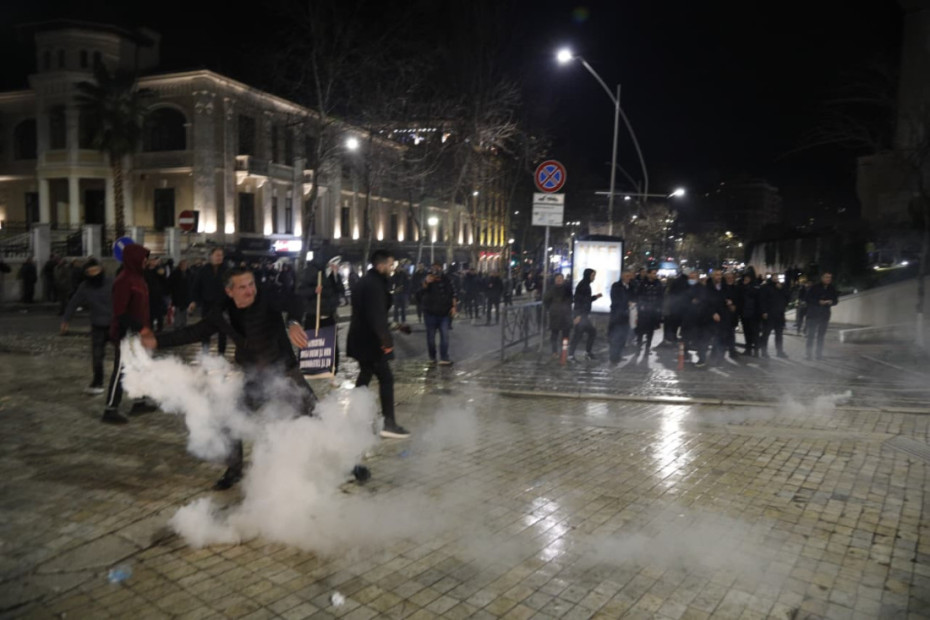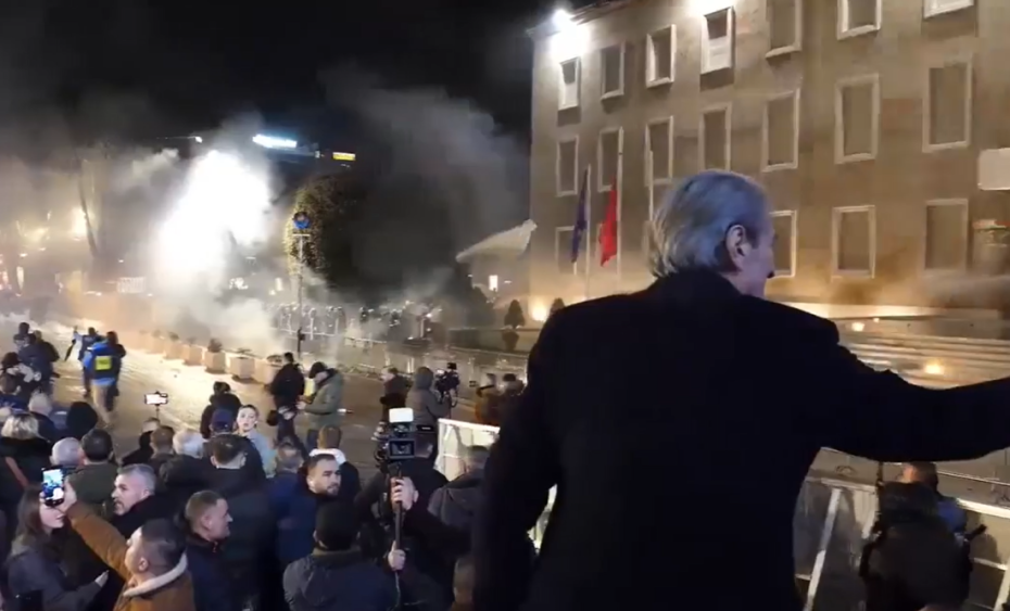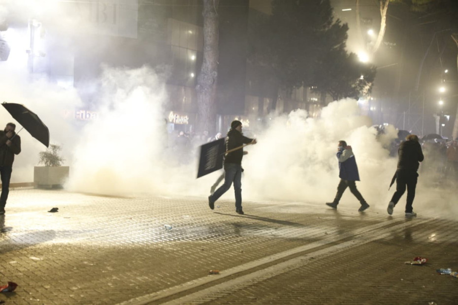 Ora 19:20 - Policia hedh gazlotsjellës për të shpërndarë protestuesit që u zhvendosën nga Kryeministria te Parlamenti.