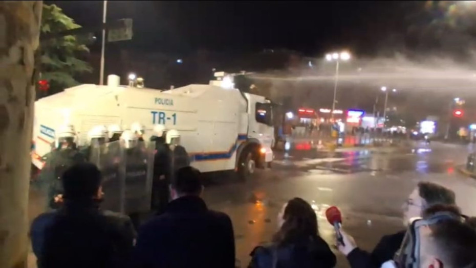 Ora 18:53 - Policia tenton të shpërndajë protestuesit me ujë me presion e gaz lotsjellës. Ndërkohë zëri nga drejtuesit e opozitës iu bëri thirrje protestuesve që të zhvendosen për te godina e Parlamentit.