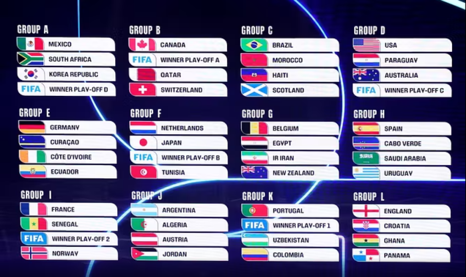 Kombëtaret e kualifikuar kanë mësuar kundërshtarët në grupe, në kompeticionin që do të zhvillohet në verën e vitit të ardhshëm në Shtetet e Bashkuara, Kanada dhe Meksikë.
