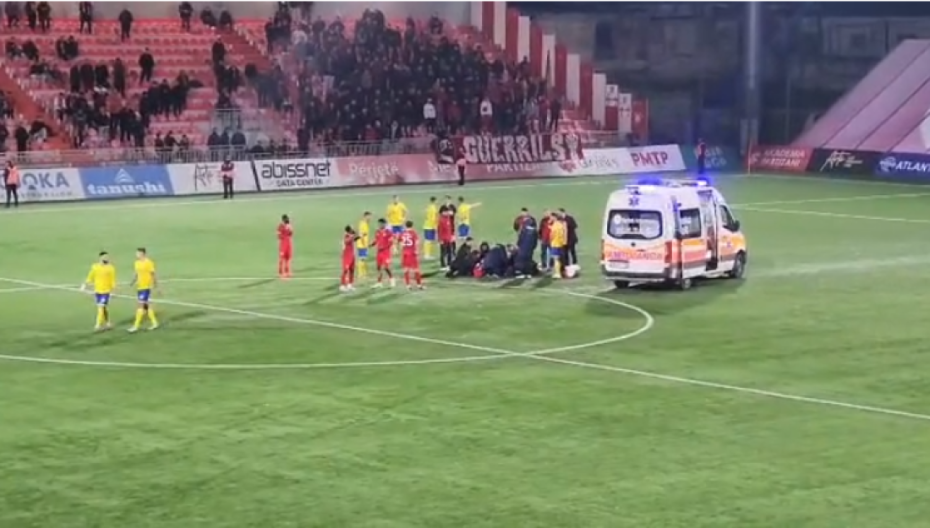 Panik në ndeshjen Partizani-Elbasani, futbollisti bie pa ndjenja në fushë, hyn ambulanca