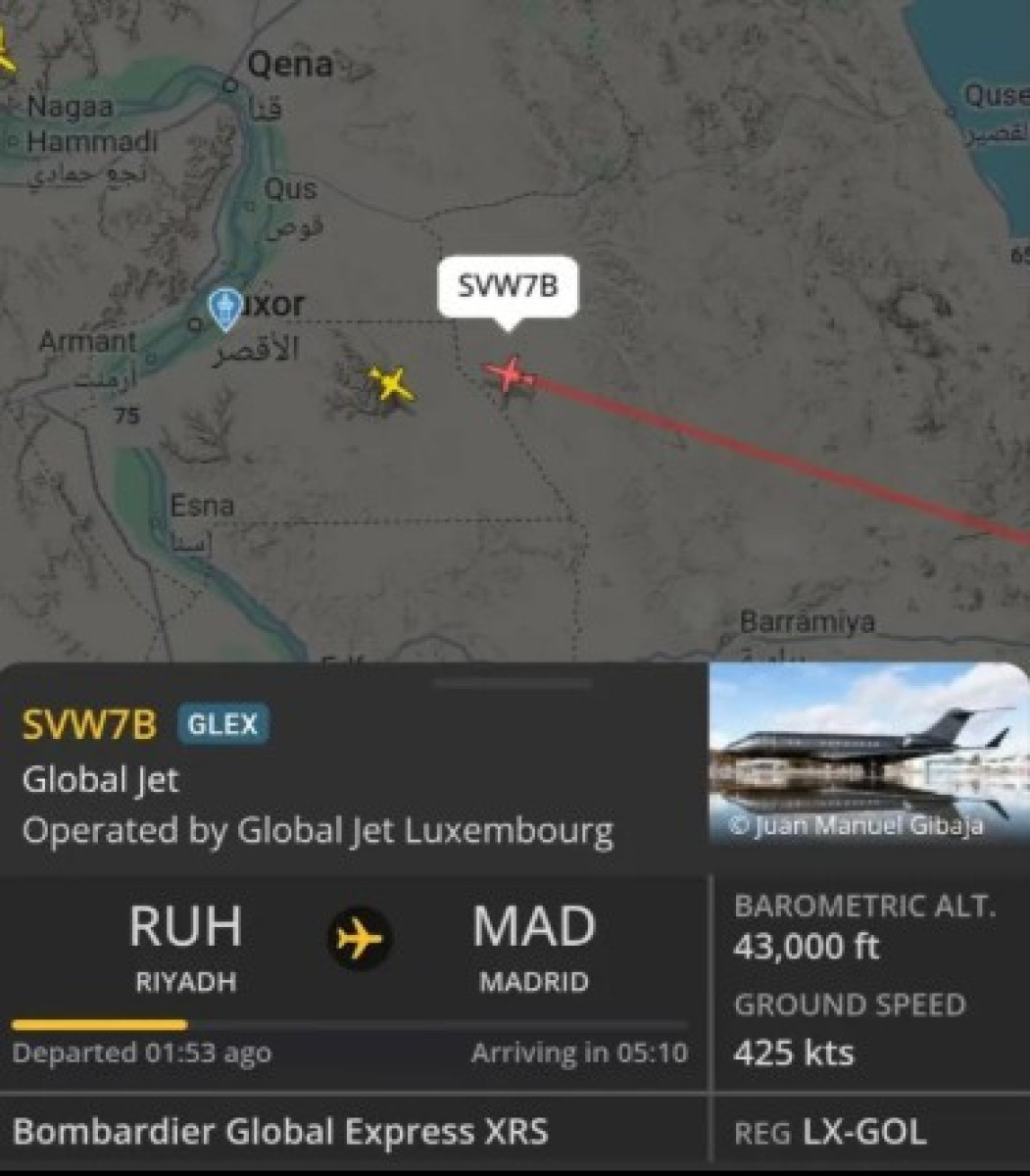 Një gjurmues fluturimi tregoi se avioni Bombardier Global Express i superyllit të futbollit bëri udhëtimin gati shtatë orësh drejt kryeqytetit spanjoll. Avioni luksoz u nis në orën 8 të mbrëmjes dhe u ul pothuajse në orën 1 të mëngjesit.