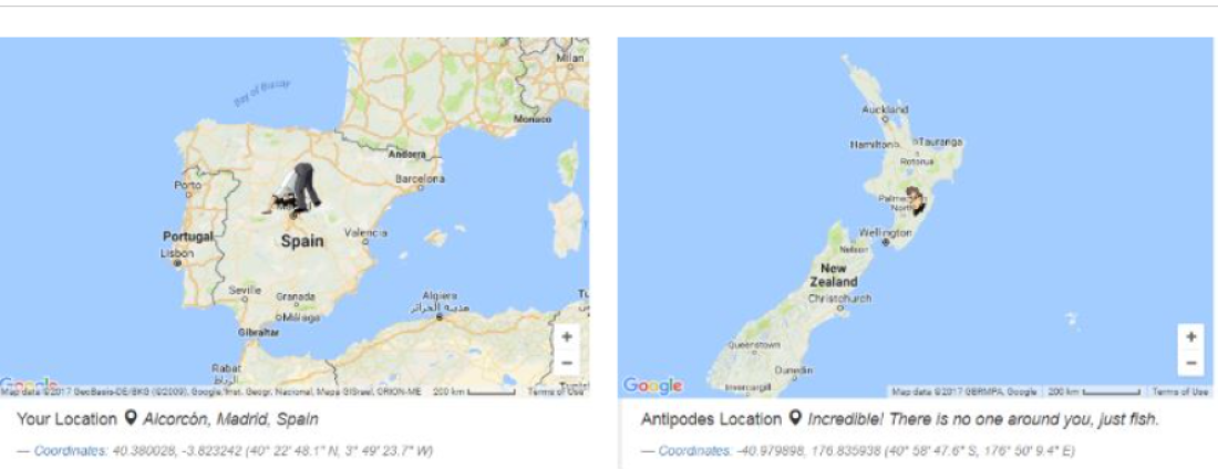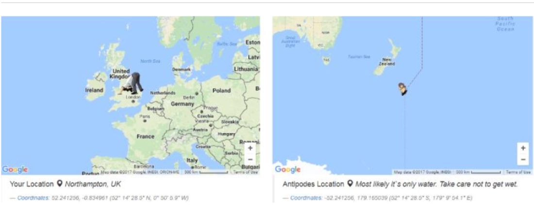 Në fakt, e vërteta është krejtësisht ndryshe. Një hartë interaktive zbulon pikën e saktë në sipërfaqen e Tokës që është diametralisht e kundërt me çdo vendndodhje.